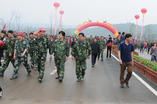 5月12日,由集團公司第二分公司援建的北川新縣城安昌河西羌北橋工程舉行了隆重的竣工通車儀式。濰坊市委常委、副市長、山東省援川前方總指揮徐振溪,北川新縣城工程建設總指揮王綿生,北川縣副縣長荊大中,濰坊市援川前方總指揮桑福嶺等領導,參加援川的濰坊各方面代表、當地群眾近千人出席了今天的通車儀式。集團公司總經理朱九洲及參加援建的有關分公司經理出席了今天的通車儀式。