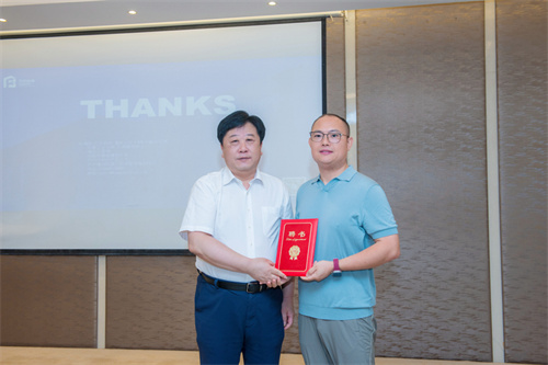 論壇期間,集團公司特聘蘇州方石科技有限公司副總經理朱海廷為集團首席智能建造專家并由總裁朱九洲為其頒發了聘書。